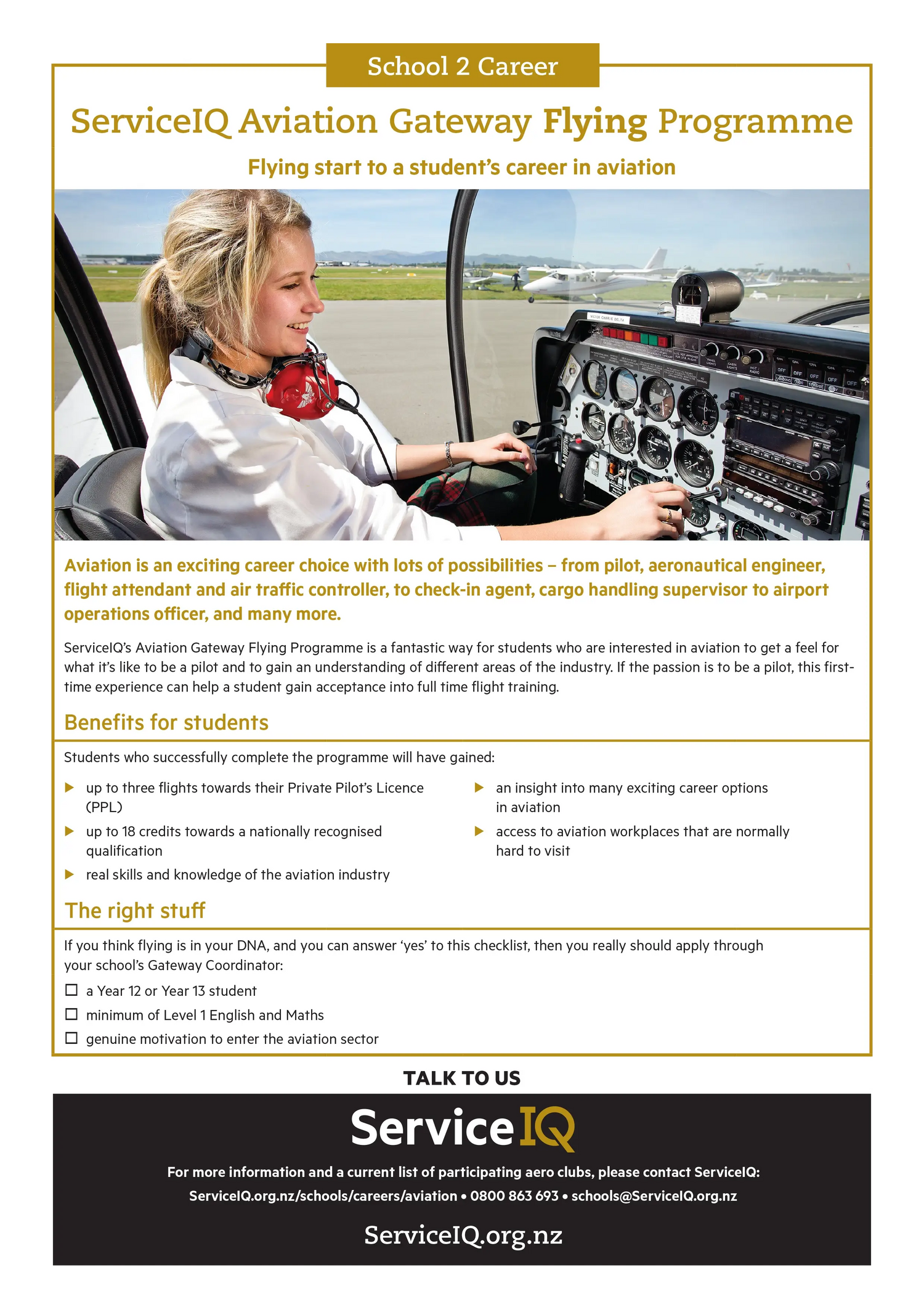 Marlborough Aero Club have collaborated with two NZQA services where you as a senior high school student can qualify for unit standards toward a career in the Aviation Industry.
