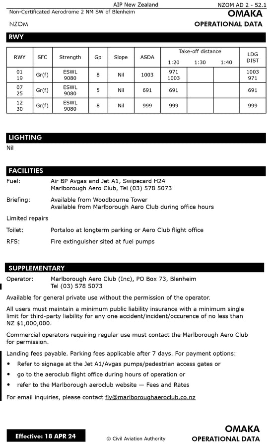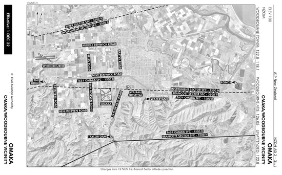 Omaka Aerodrome have residential areas in close proximity to the NE and E of the airfield boundary. The Blenheim Hospital is also located within 1nm from the threshold of RWY 25.